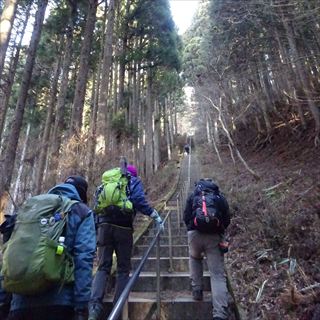 ランチ後の下山コースは、来た道を少し戻って分岐を平野方面に進みます。