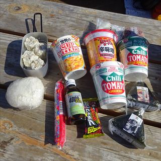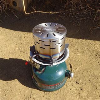 そして、ここでランチ休憩。 いつもの感じの山飯集合。 またノリクラさんが持参したのは、ホワイトガソリンのストーブとその上に載せた新兵器。 遠赤外線を発し、寒い時に暖房代わりにもなる。