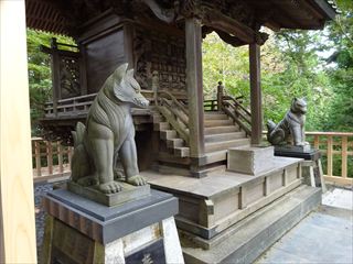 さらに奥に進むと、旧本殿の常盤堅磐社(ときわかきわしゃ)が。 そして、ニホンオオカミを神格化した大口真神を祀る大口真神社があり、狛犬はオオカミです。