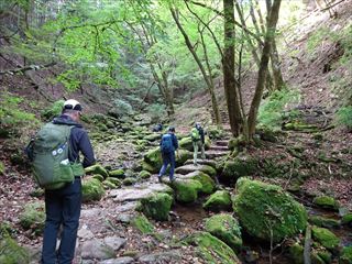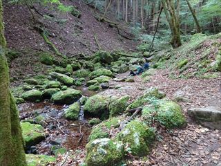 ロックガーデンのエリアに入ると、沢の流れに沿って苔むした岩が沢山見られ、その岩の間を進む。