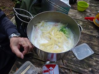 我が隊のいつもの簡単山飯。 そして料理上手なケイタさんは、美味しそうなスープパスタを作りました。