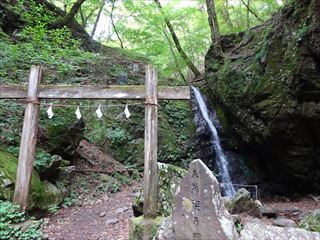 ランチ後、 ロックガーデンの上流まで来ると、小さな滝が。 綾広の滝。 ここは武蔵御岳神社のみそぎの行事に使われるとか。