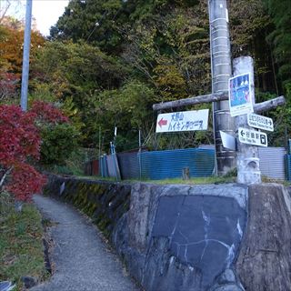 9:53 建物があり、無人で果物などを販売しているところから、さらに進みます。 近隣の山肌も紅葉が進んで、きれいです。