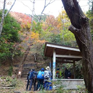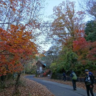 9:02 ハイキングコース入口から登山道に入る。 途中、トイレのある建物を右手に進む。 紅葉もきれいです。