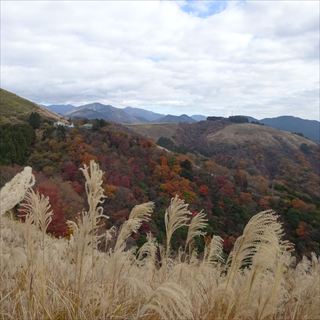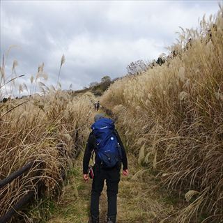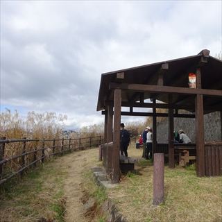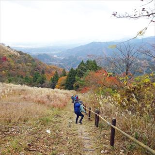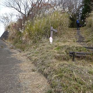 山頂近くに来ると、休憩できる東屋があり、その手前からススキがいっぱいの道を進みます。