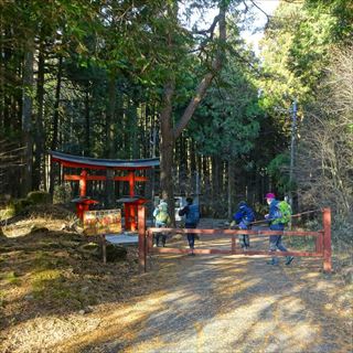 2025年19回目 (通算381回目) のハイクは、静岡県と山梨県の間にある雨ヶ岳に向かいました。 2台の車で、中央道から河口湖ICを下りて根原の駐車場に到着。 ゲートから入ると左手には、浅間神社の赤い鳥居があり、それ左手に見ながら奥に進みます。