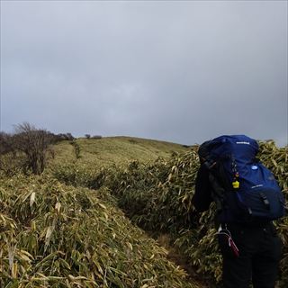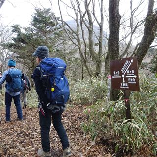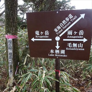 そして端足峠の分岐地点で協議します。 というのも、雨ヶ岳方向一帯は黒い雲で覆われていて、このまま天候が悪化する様相。 そして決断。 等距離で行ける竜ヶ岳に目的地を変更しました。