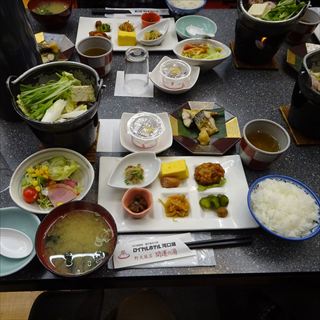 夕食後ホテルに戻り、入浴後、納会。 途中の店で買い込んだお酒やつまみで、プチ宴会と、モニターに資料や写真を表示して、この年のハイクを振り返えりました。 翌朝はホテルの和定食の朝食。 9時過ぎにチェックアウトして、景色の良いところに立ち寄ろうかと思いましたが、あいにくの雨で断念。 スーパーや道の駅で買い物などして東京に戻りました。 今回のハイクは雨ヶ岳の予定を途中で竜ヶ岳に切り替えて悪天候を回避できたのは良い判断だったと思います。 隊員の皆さん今年も、ありがとうございました。 おわり