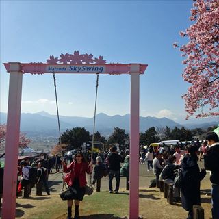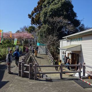 途中、道を間違えて、少し時間をロスしましたが戻ってきて、自然館の前に。 この先で入園料を払って、松田の、さくら祭り会場に向かう。 このあたりから河津桜が見え始め、富士山とのコラボもいい感じ。