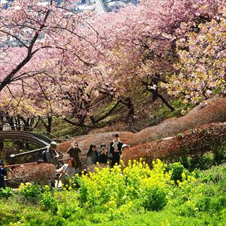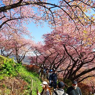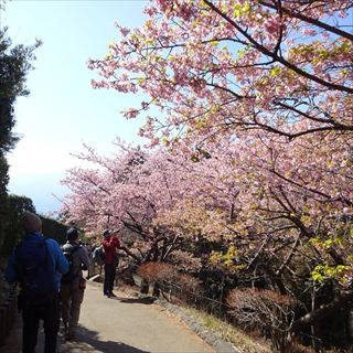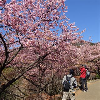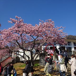 さくら祭り会場の西平畑公園に向かう道は河津桜が続き、いい景色。