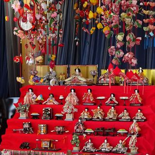 こどもの館では、つるし雛や雛人形が展示されていました。