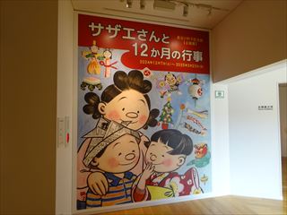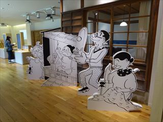 | 記念館にはサザエさんの漫画に出てくる一家の絵やオブジェが。そして長谷川町子さんの関連資料や展示がありました。 |