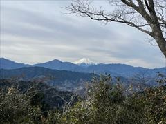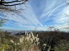 恒例の高尾山詣は1号路から行きます。 金毘羅台からの眺め、筋状の雲が冬らしい空。 思ったよりも雲が多いです。 |