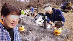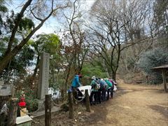 | 稲荷山コースは修復のため山頂直下は通行止めでした。 一丁平にてランチ、いつもの場所。 日向は暖かく、ゆっくり談笑ランチを楽しみました。 |